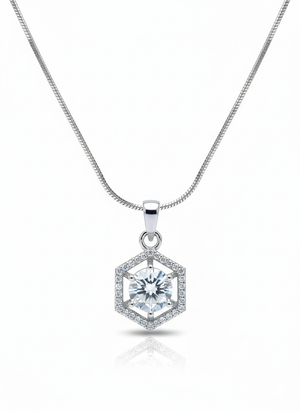 Ratmanee Silver Prism Necklace – Simple Hexagon Pendant with Crystal Center