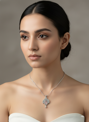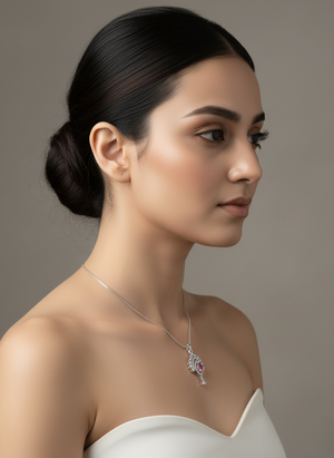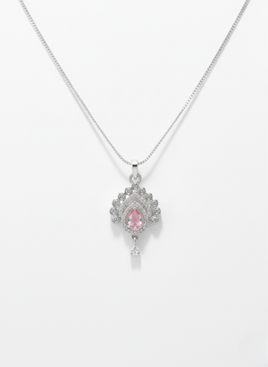 Ratmanee Silver Royale Pendant – Pink Teardrop Gem Necklace with Crystal Accents