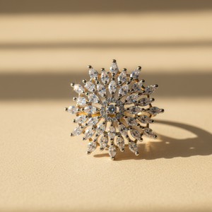 Floral Burst Crystal Ring Elegant Gold Statement Cocktail Jewellery