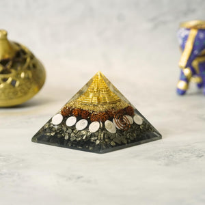 Dhanlabh Pyramid with Shree Yantra, Rudraksha, Gomti Chakra & Pyrite