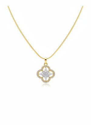 Ratmanee Golden Clover Pendant – Elegant Gold Necklace with Crystal Flower Center
