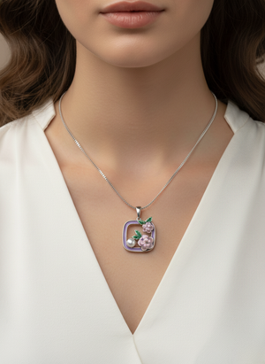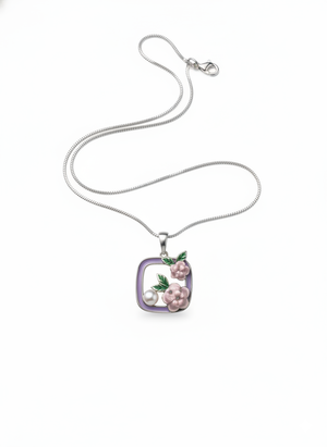 Ratmanee Lavender Bloom Pendant – Silver Necklace with Pearl and Enamel Flowers