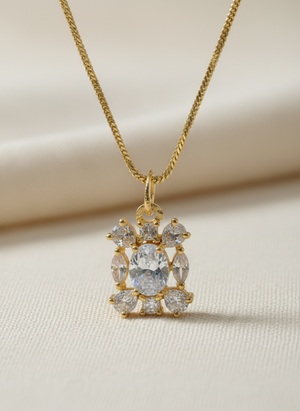 Ratmanee Royal Spark Pendant – Gold Necklace with Oval-Cut Crystal Center