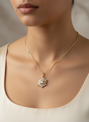 Ratmanee Sun Aura Pendant – Gold Necklace with Radiant Crystal Center