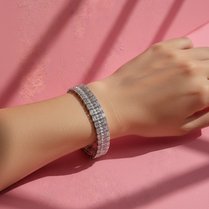 Silver Baguette Tennis Bracelet Luxury CZ Women’s Elegant Fashion Jewellery
